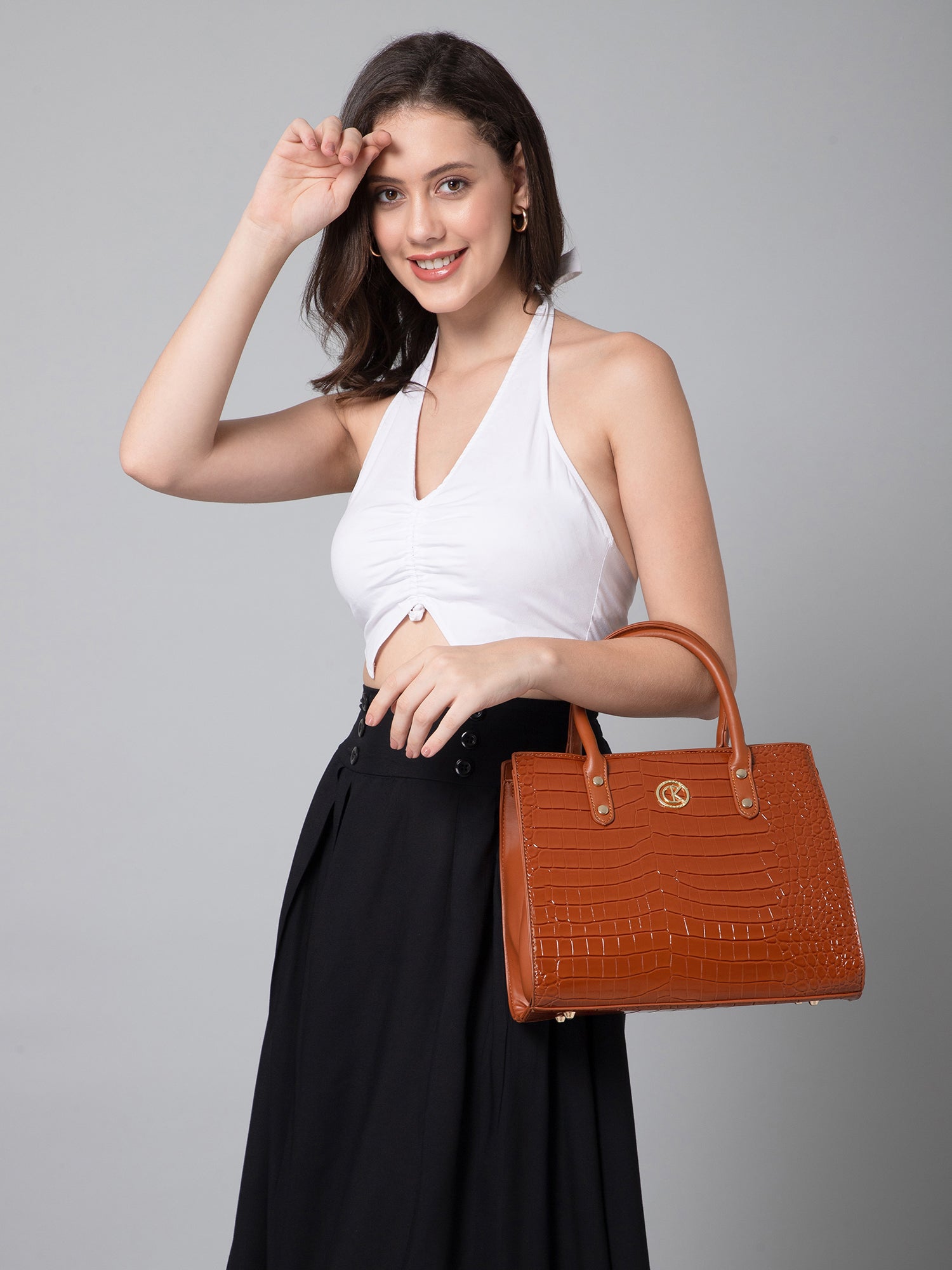 AMALI Brown Satchel Women's Handbag | Elegant Satchel Bag With Long Strap for Ladies/Girls