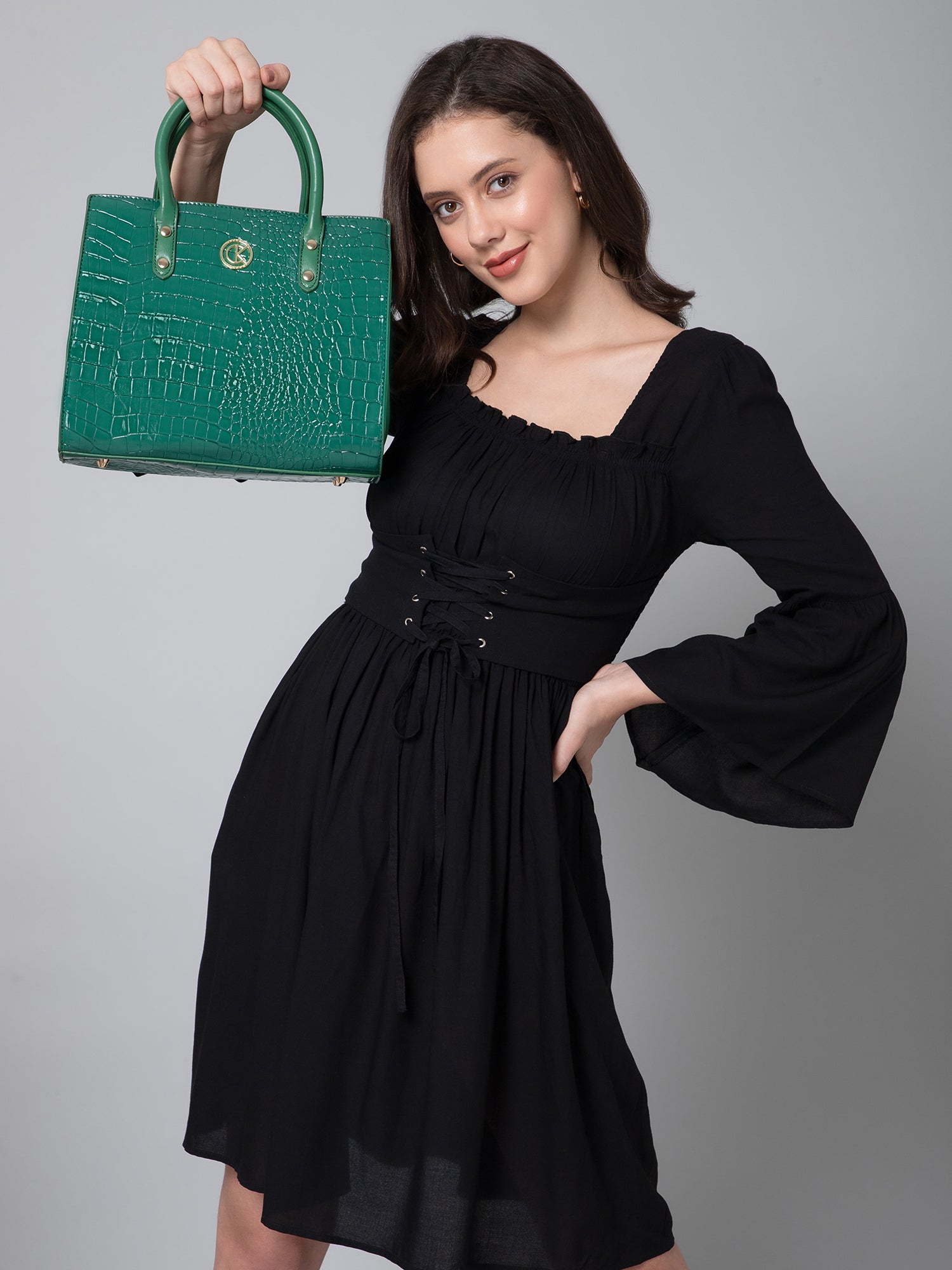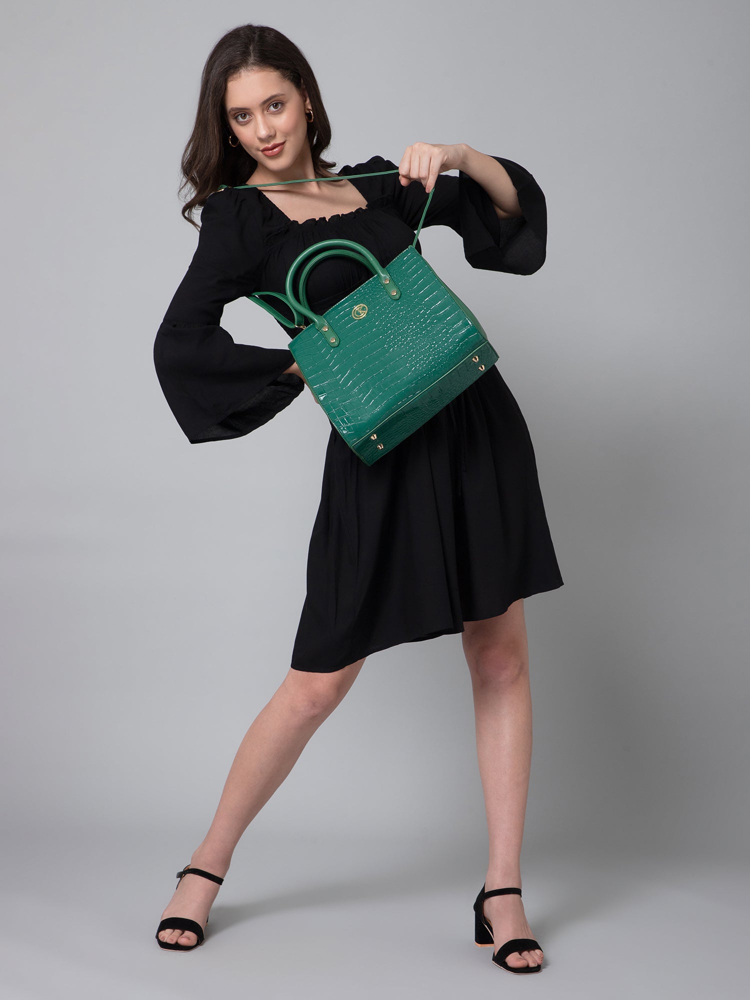 AMALI Green Satchel Women's Handbag | Elegant Satchel Bag With Long Strap for Ladies/Girls