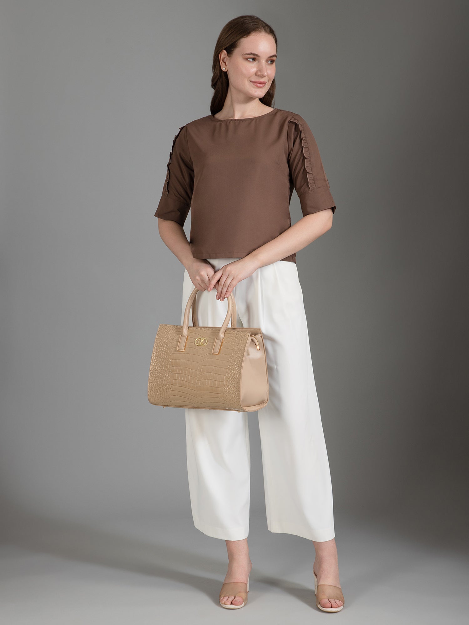ARIKA Beige Satchel Women's Handbag | Elegant Satchel Bag With Long Strap for Ladies/Girls