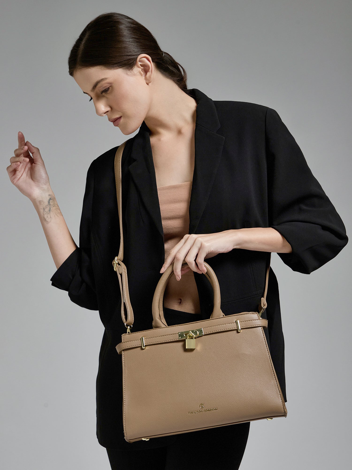 The ELISE Satchel Women's Handbag from Cuckoos London is a versatile and elegant accessory designed to meet your everyday needs with style. Its sophisticated design, coupled with practical features, makes it ideal for work, travel, or casual outings. The spacious compartments and multiple pockets offer ample space to keep your essentials organized while exuding a chic, modern vibe.