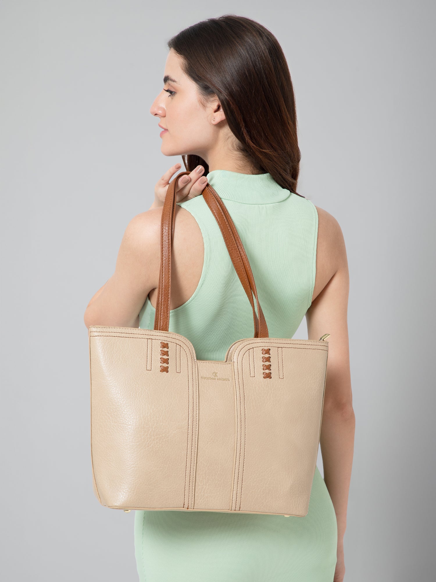 FIORE Beige Tote Bag for Women | Stylish Shoulder Tote Bag for Ladies/Girls