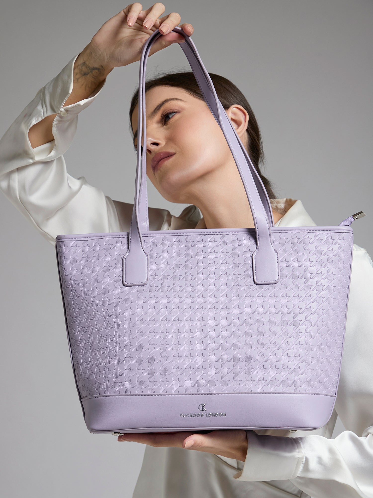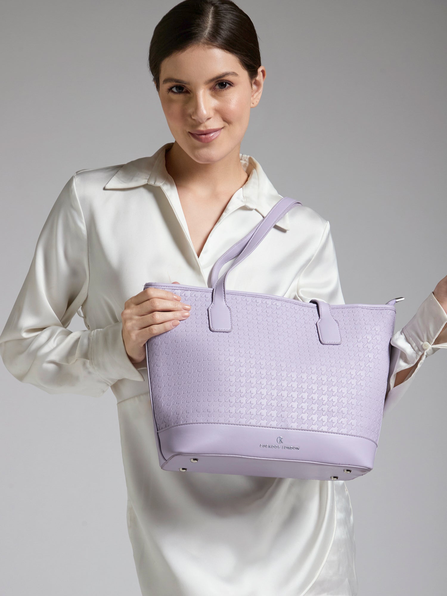 GRETA Purple Embossed Tote Bag for Women | Stylish Large Handbag for Work & Daily Use Ladies/Girls