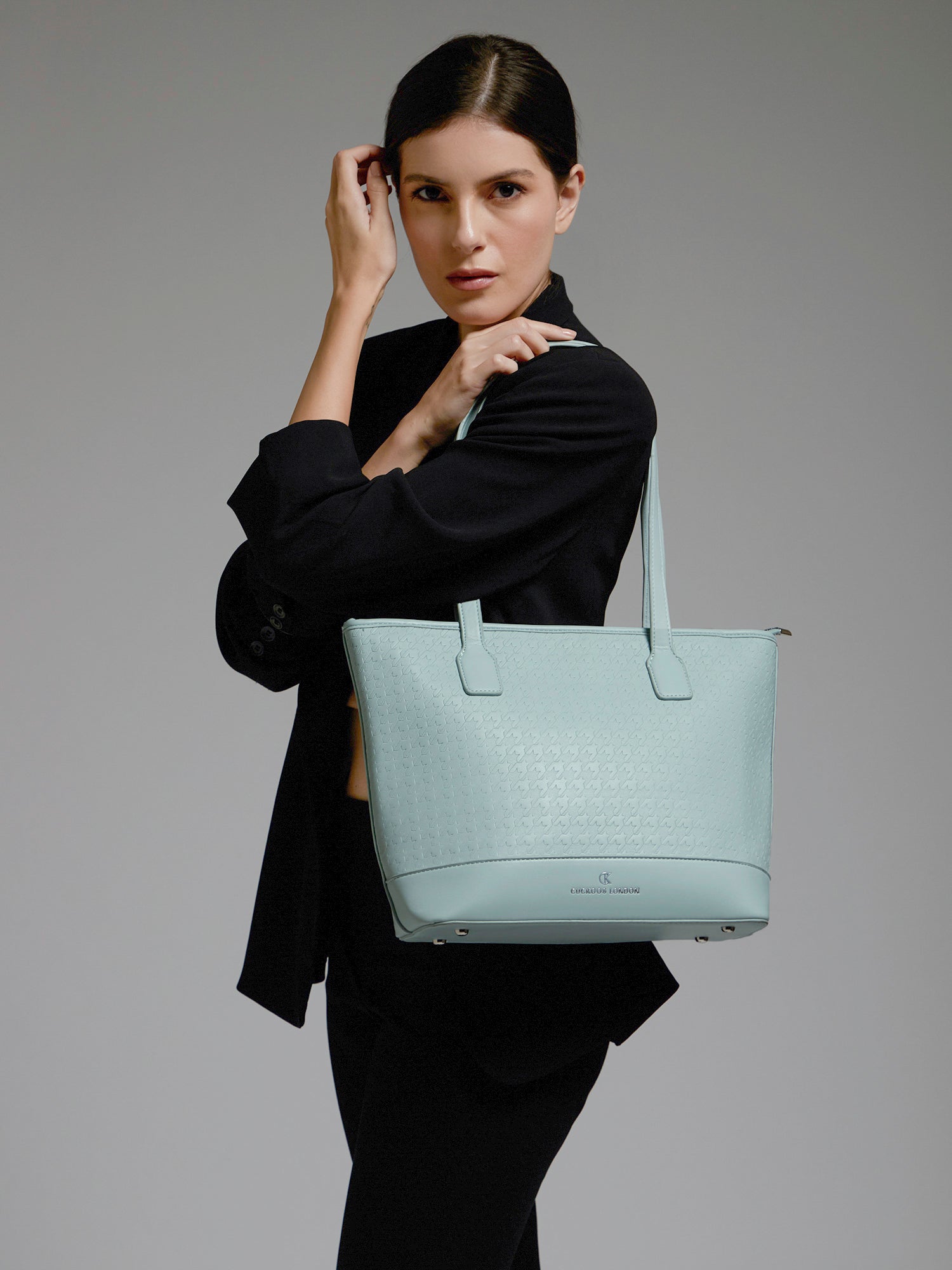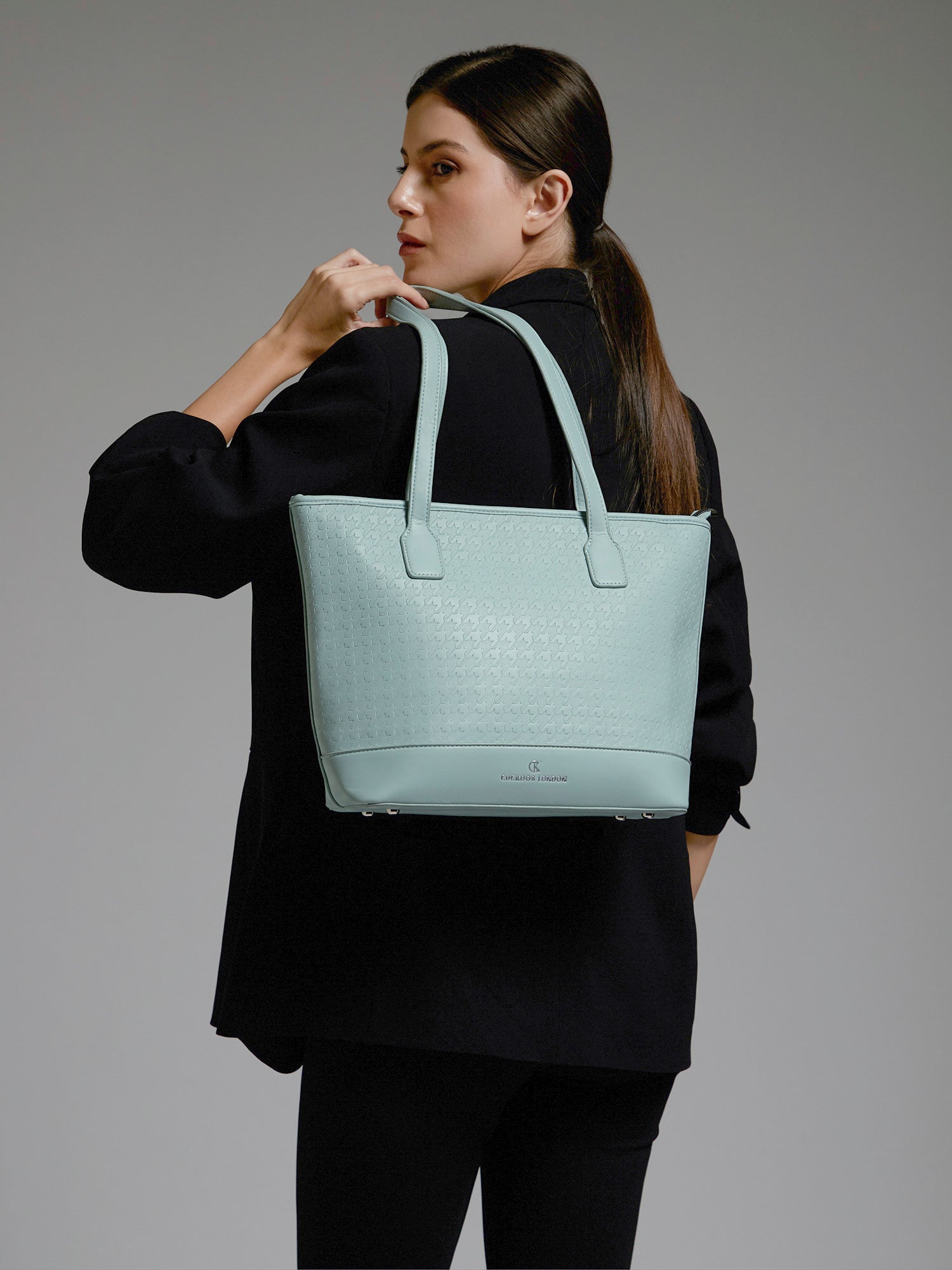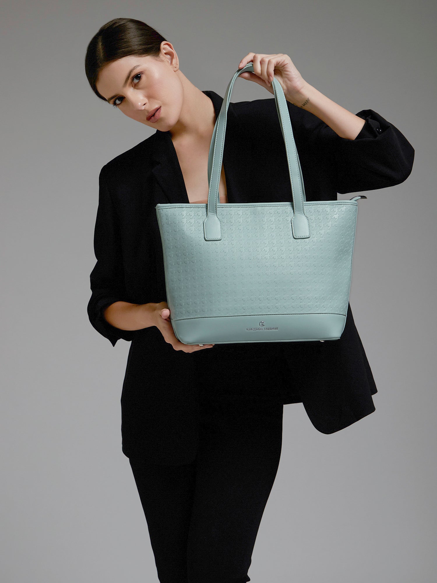 GRETA Sea Green Embossed Tote Bag for Women | Stylish Large Handbag for Work & Daily Use Ladies/Girls