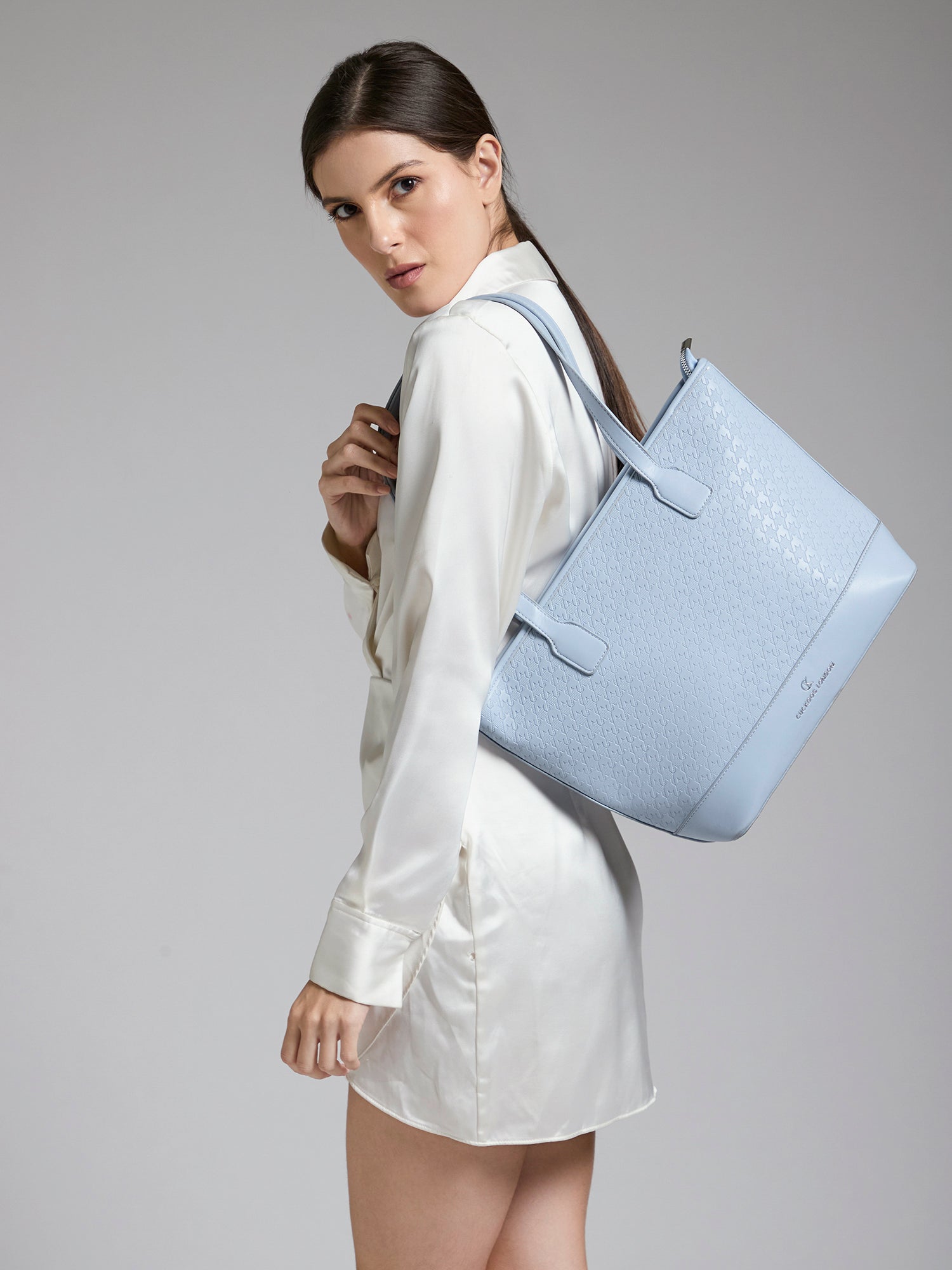 GRETA Sky Blue Embossed Tote Bag for Women | Stylish Large Handbag for Work & Daily Use Ladies/Girls