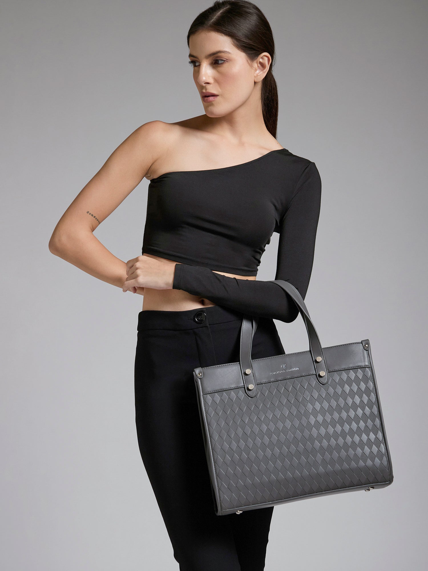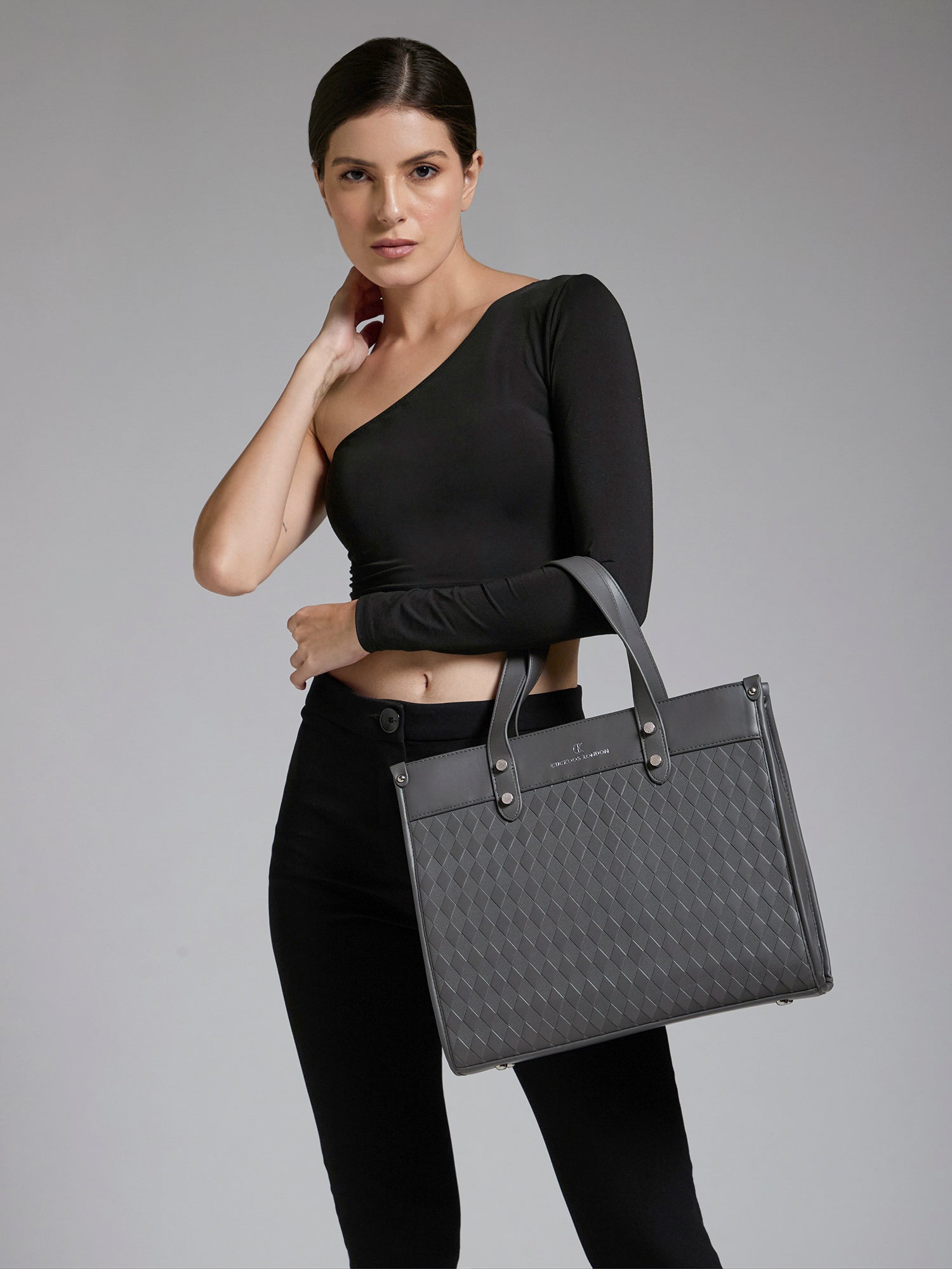 NORA Grey Laptop Office Tote Women's Handbag | Elegant Tote Office Bag for Ladies/Girls