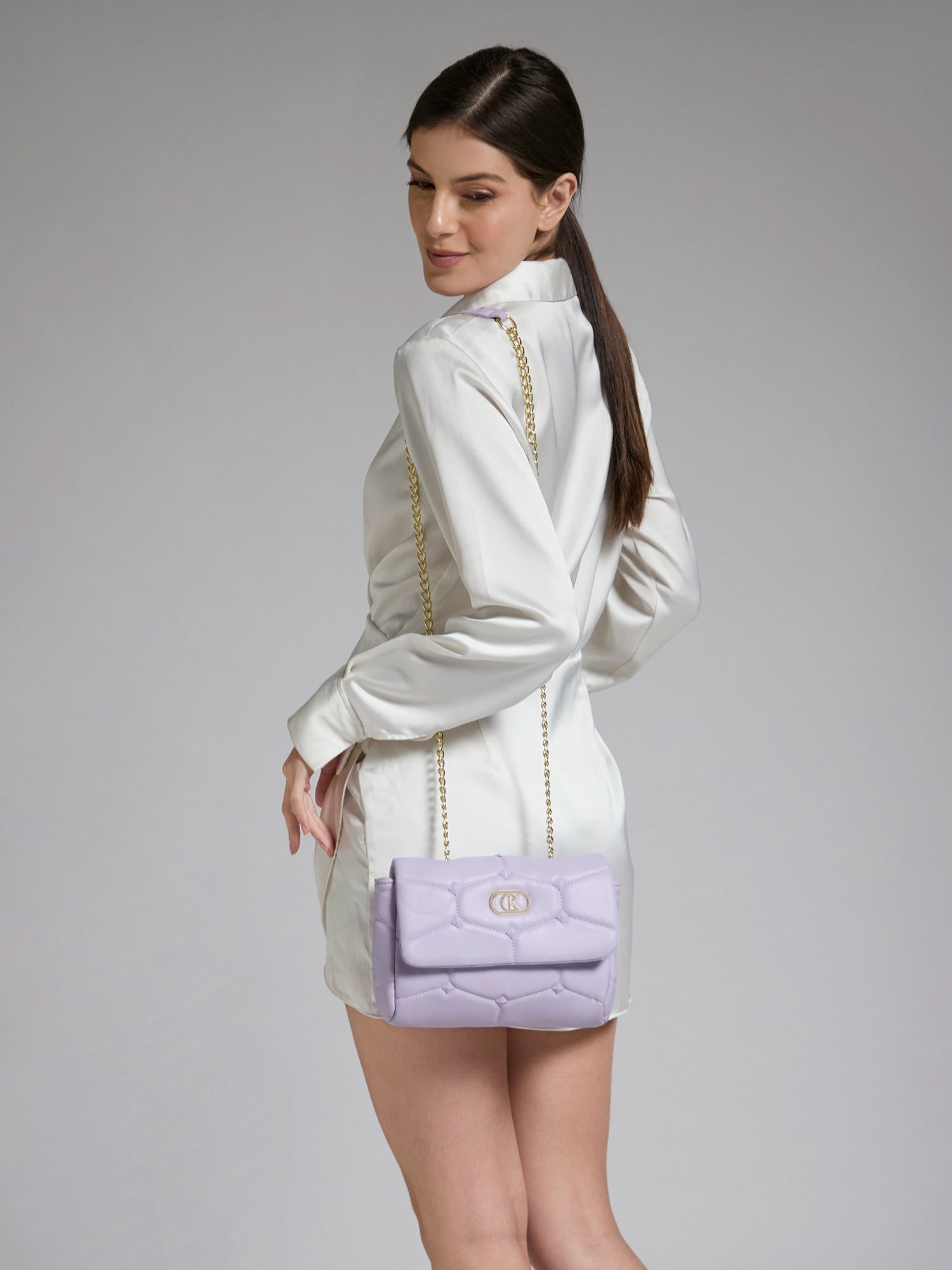 PAULA Quilted Purple Shoulder Bag for Women | Compact Crossbody Sling Bag for Ladies/Girls