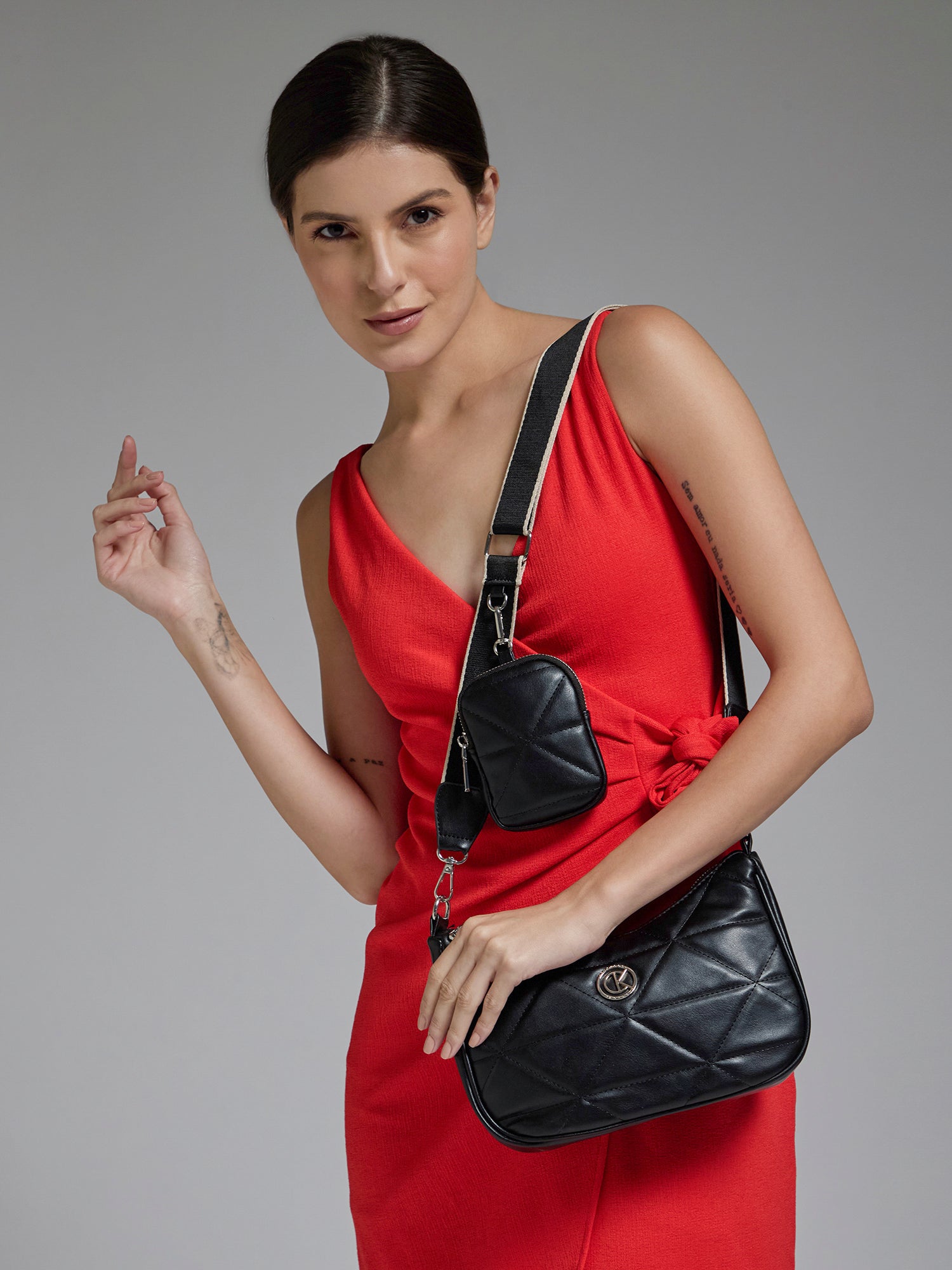 WILLA Black Shoulder Bag for Women | Compact Crossbody Sling Bag for Ladies/Girls